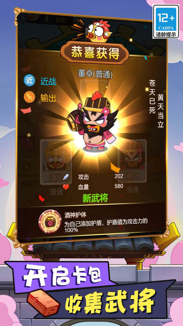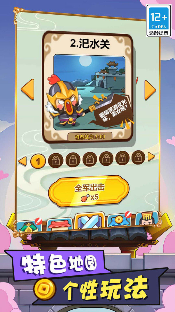 萌系可爱的游戏画风,武将们的造型立绘极为搞怪。